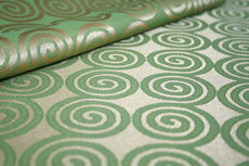 Ткань не только прочна, но и красива, выглядит дорого и эффектно. Такая необычная красота ткани получается за счет сочетания переливающегося полиэфира и матового рисунка. Эта ткань будет красиво смотреть в гостиной, кафе, ресторанах.